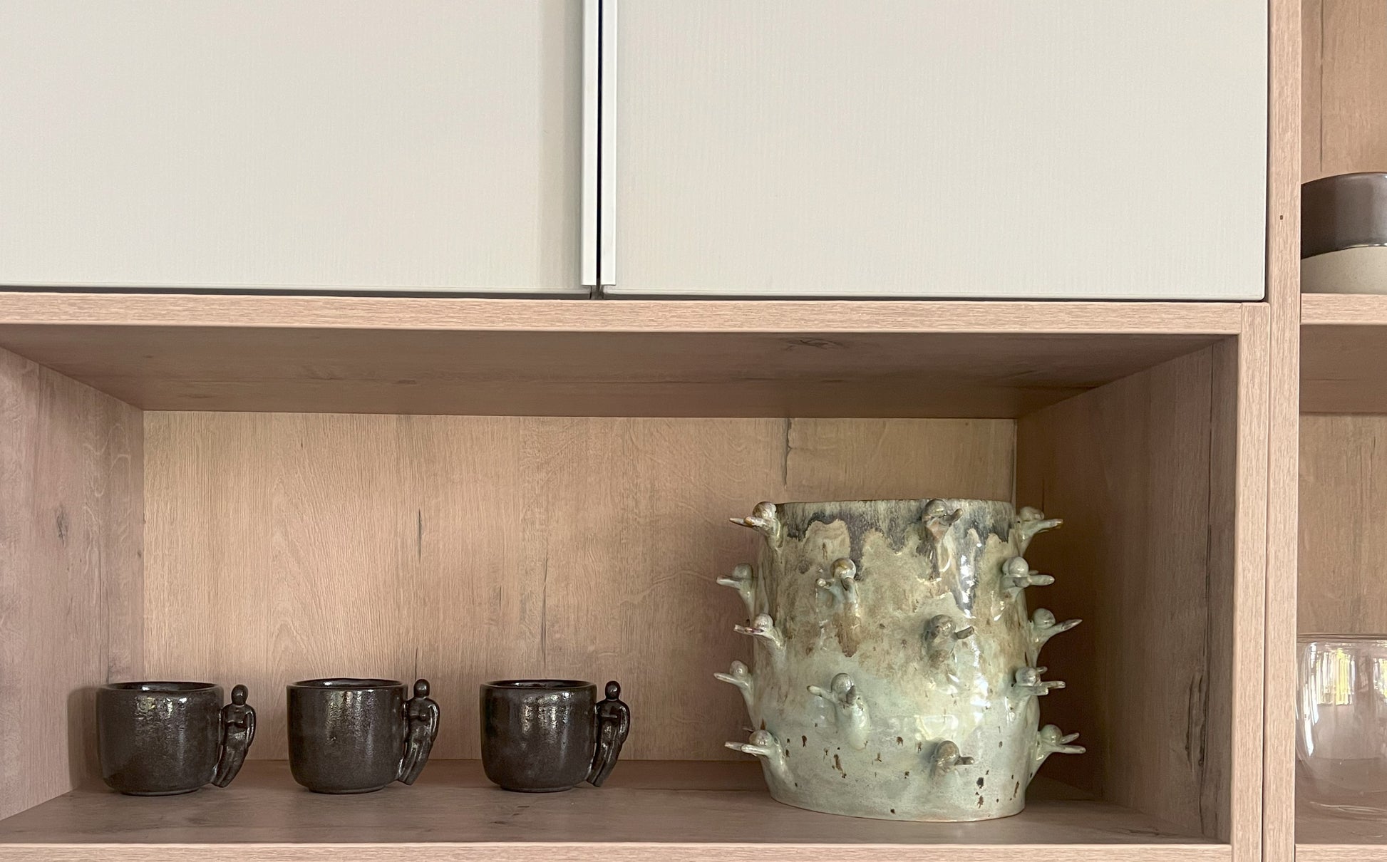 Unstuck is a vessel of quiet transformation, a compact ceramic form alive with gesture and motion. Along its surface, small hand-sculpted human figures appear to lift, stretch, and ascend - caught in the act of release. Their presence invites reflection on movement, both physical and emotional, as if something long held is finally letting go.